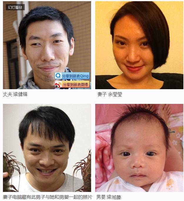 我叫梁健锋,香港人,正是事件中的丈夫。我妻子叫张**,本是珠海斗门人,现经由我们的婚姻获得香港身份证。妻子亲口稱第三者是一位叫刘人铭的珠海某司法人员。男婴叫梁祐滕,我的第二个儿子,有香港出世纸为证,但妻子说他是刘人铭的儿子。※以上全是真实姓名