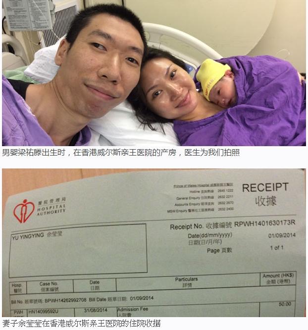 但是,香港生死登记处的工作人员说,根据香港法例,宝宝必须跟父亲姓,于是我们回家重新改命,再去登记,宝宝的名字就叫梁祐滕,「祐滕」是妻子找人改的,说是她家那边的老人改的。